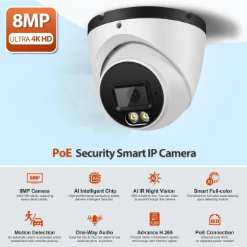 - 8MP HD Resolution+250ft IR Night Vision