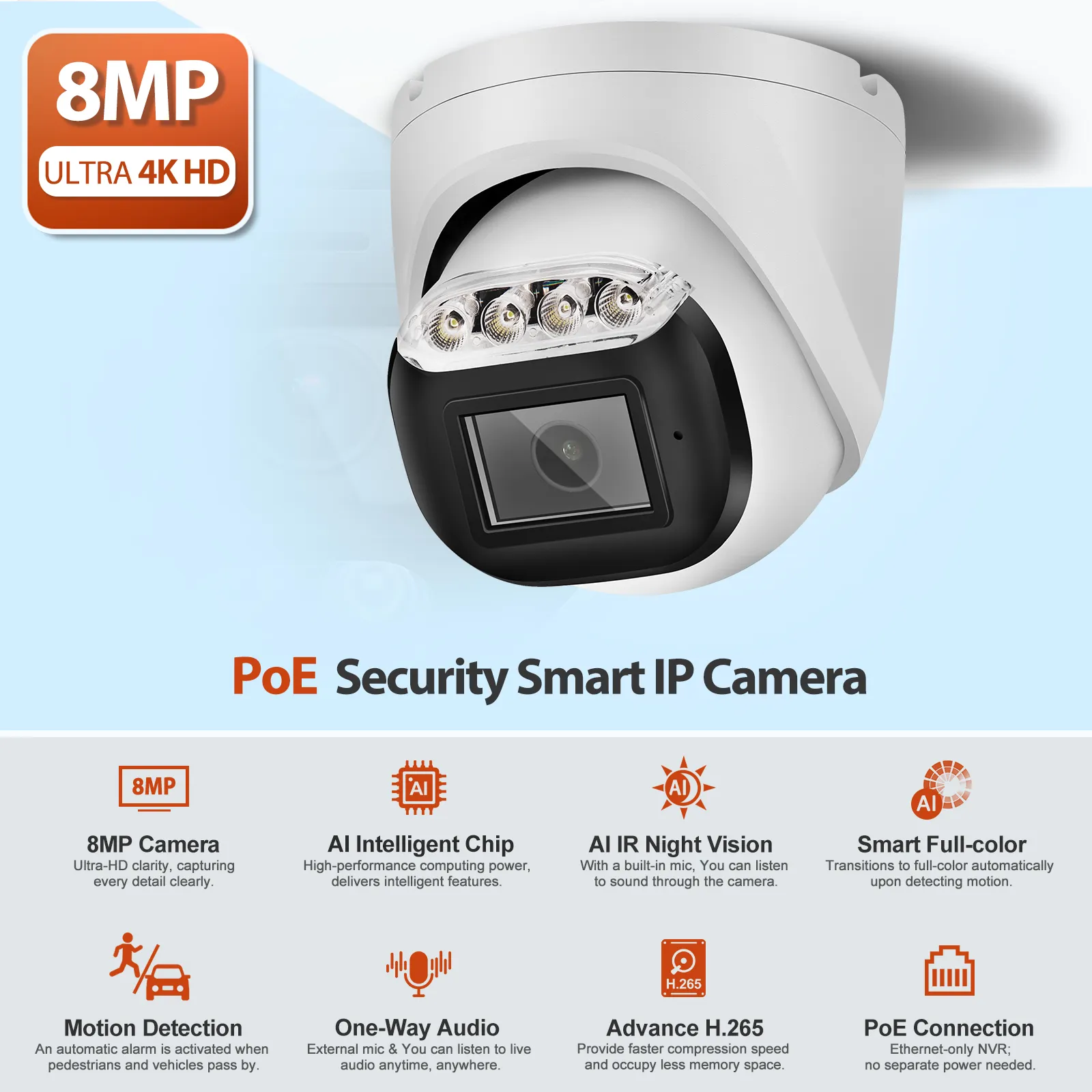 1 × 8MP Ultra HD PoE Camera