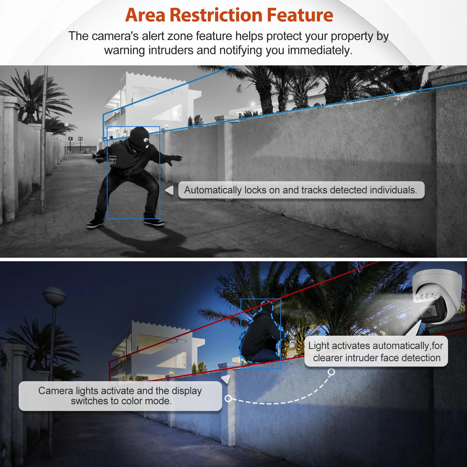 This high-performance 8MP dome security camera delivers Ultra HD 3840*2160 resolution through its advanced 1/2.8″ CMOS sensor and latest image processing chipset. The starlight-grade lens provides exceptional low-light performance, capturing clear images even in near-darkness (0.01 Lux). The camera’s rugged IP66-rated metal housing withstands harsh weather conditions (-30°C to 60°C) for reliable outdoor operation. Compatible Hikvision Eyessys Dahua Reolink NVR.